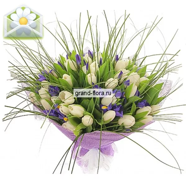 Белоснежные тюльпаны и сиреневые ирисы в обрамлении сочной зелени – это букет, который вызывает легкое головокружение от его неземной красоты и опьянение от его сочного аромата. «Утренняя звезда» придется по душе, как милой молодой барышне, так и вашей любимом мамочке. А наша служба доставки букетов постарается сделать все возможное, чтобы ваши любимые женщины, как можно скорее, вкусили его нежный запах и ощутили мягкость бархатных лепестков.