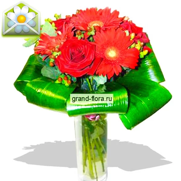 Вы готовитесь к судьбоносному для Вас свиданию? Важно продумать все до мелочей. Изысканный, аристократичный букет «Рандеву» из ярко красных роз и гербер - похож на бушующий огонь страсти, полыхающий на больших, ярко зеленых листьях Вашего воспитания и уважения.